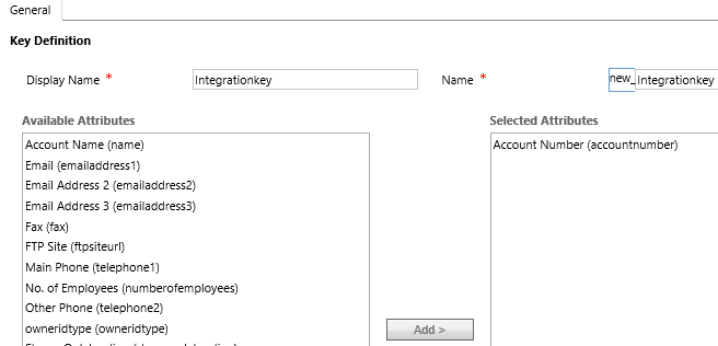 - Select source field where want to store this key, so let’s say want to utilizeAccount Number field, select Account Number and click on Addbutton.