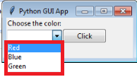 In this blog, I am going to create a Combo box widget and option capturing function in Python GUI application. When a user chooses a list of options in the combo box and clicks the "Submit" button, the action will capture the option and display the option in button name.