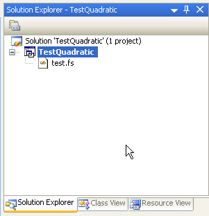 After playing in the interactive window for a bit, I decided to create a real F# project in visual Studio. I added a new test.fs file to my project