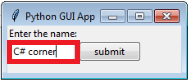 In this blog, I am going to create a textbox and text capturing function in Python GUI application. When a user enters the text in the textbox and clicks the Submit button, the button action will capture the text and display the Hi text in Python console.