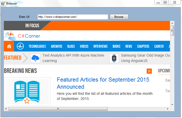 Now run the application with typing the c# Csharp corner url and click on Browse button.