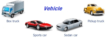As shown in the figure given above, vehicle can be a general concept for car and truck. A vehicle provides general information related to car and truck.