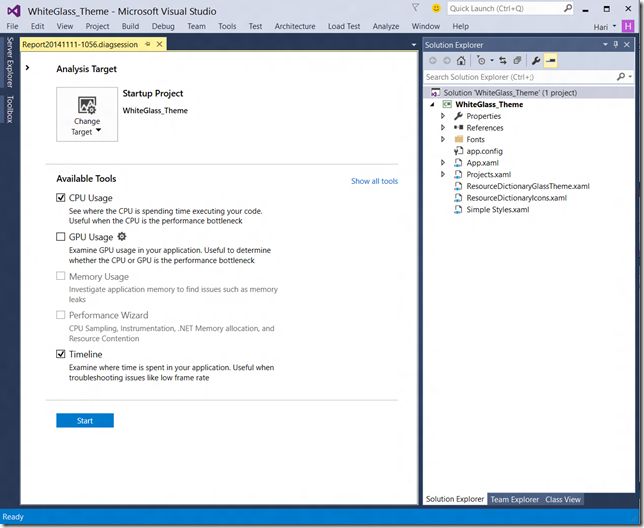 Diagnostics tool for WPF applications – Based on survey, problems like slow application startup, poor frame rate and other common performance issues will be addressed with the new diagnostics tool.