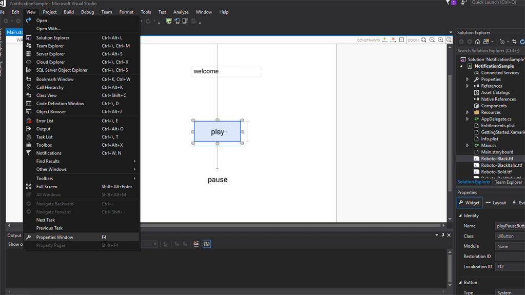 Create a new Xamarin ios app using visual studio. File => new => Project => iphone single view app.