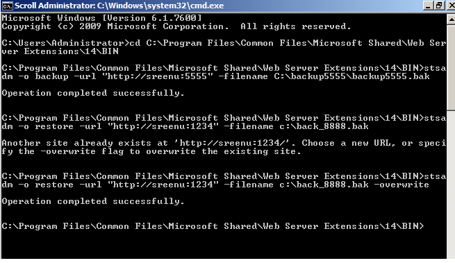 C:\Users\Administrator> Backup-SPSite -Identity http://sreenu:5555/ -Path
