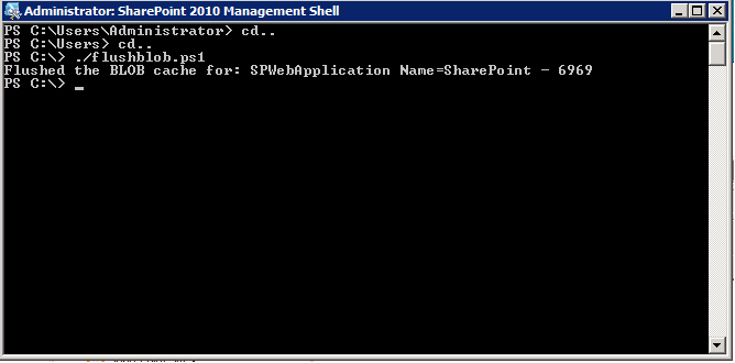 Write-Host "Flushed the BLOB cache for:" $webApp