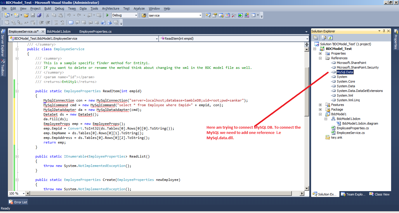 Here am connecting to MySQL database for that am using mysql.data.dll and adding that dll's reference to the project.
