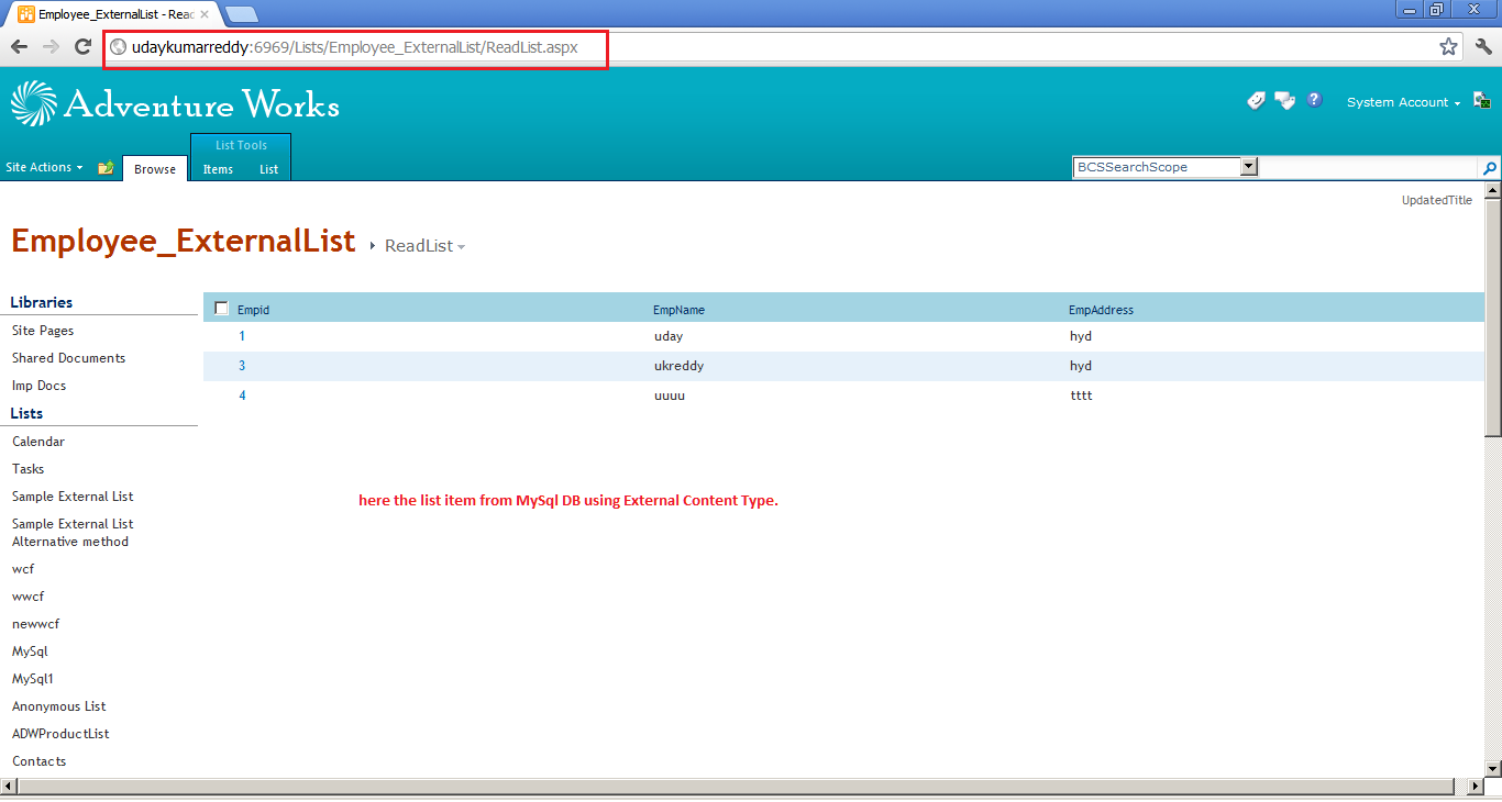 26. Open your site and create external list.