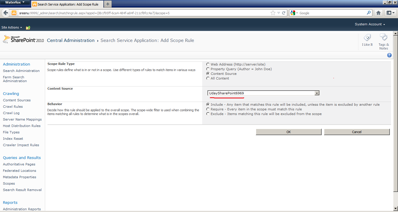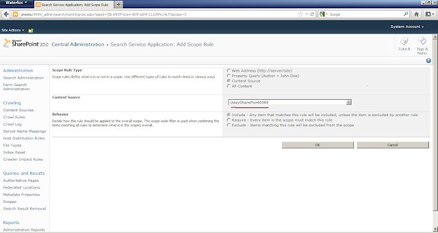 13. Check your Scope (which was created in central admin). then Click on "OK".