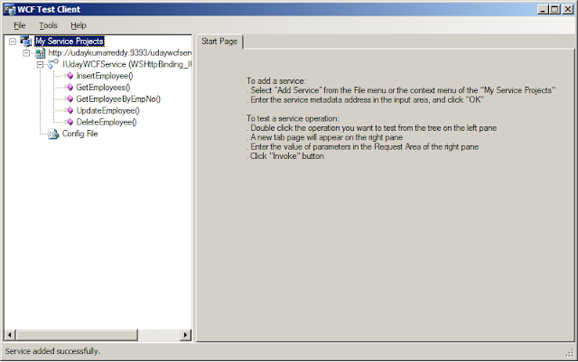 9. Now we can check our WCF service in two ways using browser and WCFTESTCLIENT