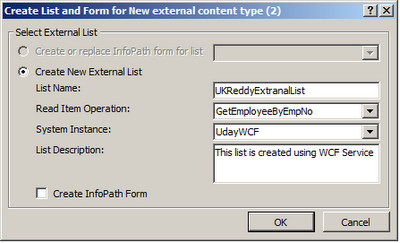 7. Specify External List Name and Description and Click on "OK". but dont close SPD2010.