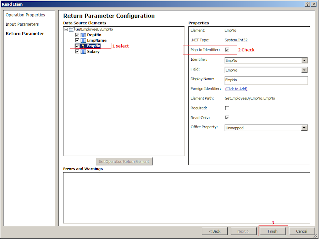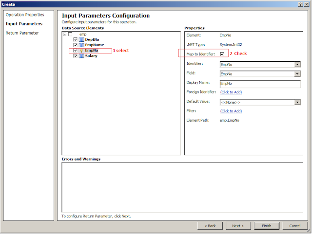 So select "EmpNo" in data source elements and check "Map to Identifier" then click on "Finish".