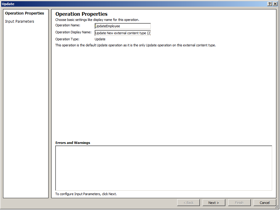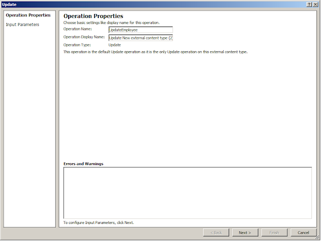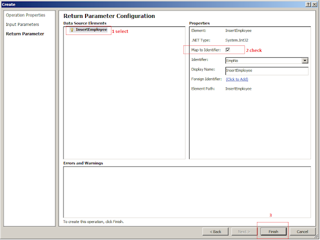 l. In return Parameter configuration Select "InsertEmployee" and Check "Map to Identifier" then click on "Finish".