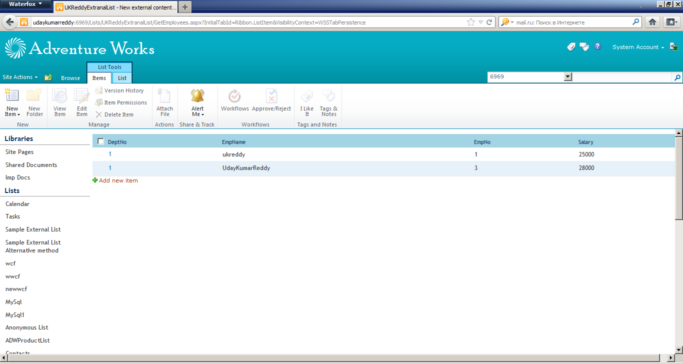 13. Now go back to your browser and refresh.It will display all data in list which actually are present in external database.