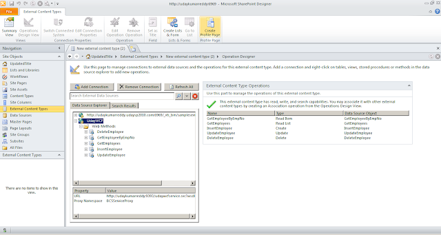 10. Now go back to SPD2010 and select your External Content type and click on "Create Profile Page" .