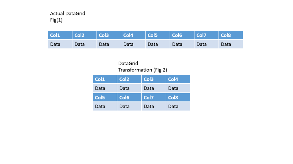 I am working on a project with WPF and C# technology, I was wondering if there is a possibilty to acheive as shown in the figure, I want to first define the fixed columns for datagrid and if the SQL query is returning more columns than the defined then it should show that columns in the next available row and this is query will return only single record.